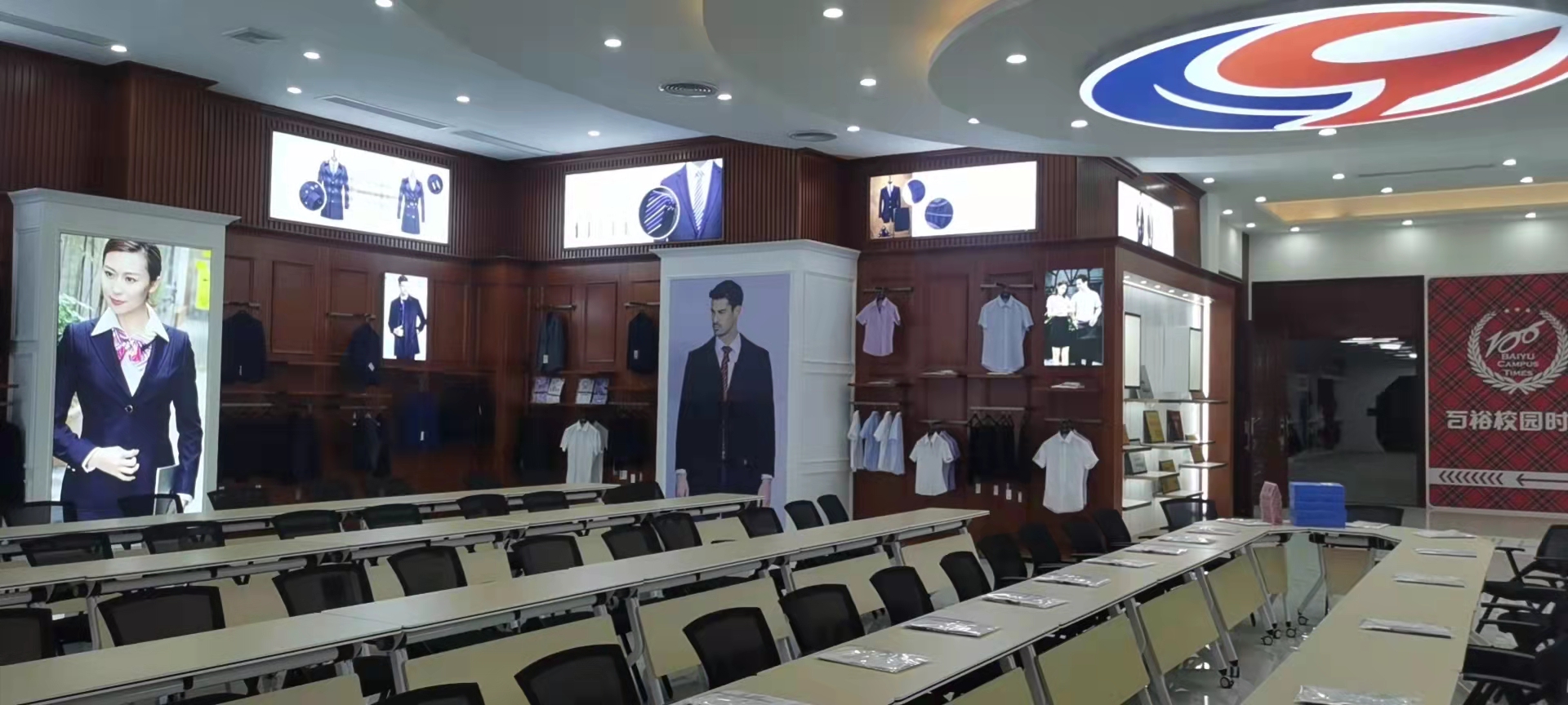 品牌館展示了百裕集團旗下百裕校園時代、喬派恩、愛樂學等品牌服飾經典款,不同的區(qū)域裝飾風格展現(xiàn)不同的品牌個性與文化,可滿足靜態(tài)與動態(tài)不同形式的展示方式。