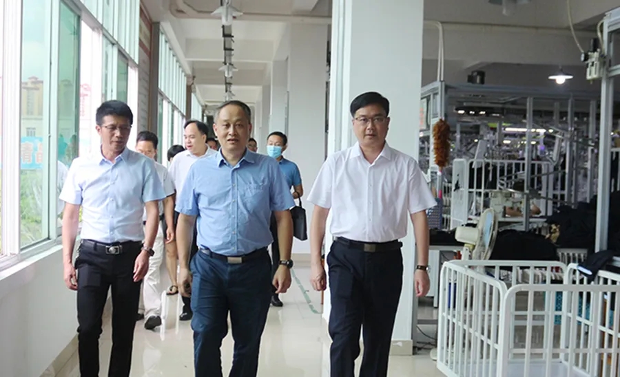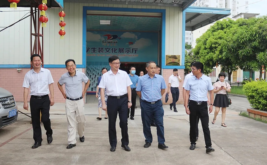 梁藝光副廳長一行人先后參觀了校服文化展示中心、服裝生產(chǎn)車間,期間曾晏來總經(jīng)理向梁藝光副廳長詳細介紹了公司疫情防控工作的落實情況,及復(fù)工復(fù)產(chǎn)、公司經(jīng)營發(fā)展的情況,表示在疫情期間一定繼續(xù)做好防控措施,保障員工健康安全,確保企業(yè)生產(chǎn)經(jīng)營有序開展。