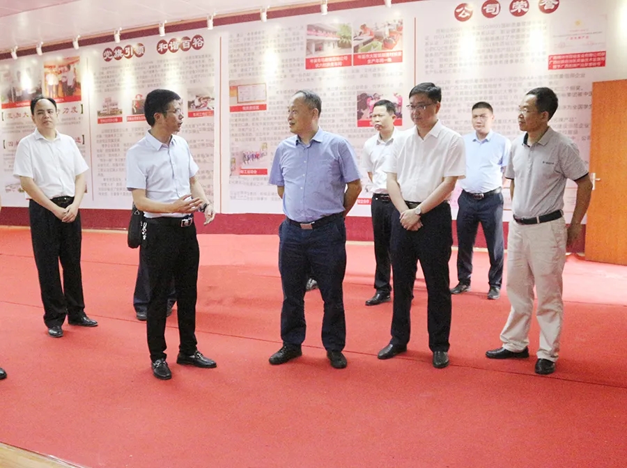 5月25日下午,自治區(qū)商務(wù)廳黨組成員、副廳長梁藝光一行到公司參觀調(diào)研,梧州市商務(wù)局局長張遠、副局長李冬霞、岑溪市委副書記、市長吳偉華等陪同調(diào)研。