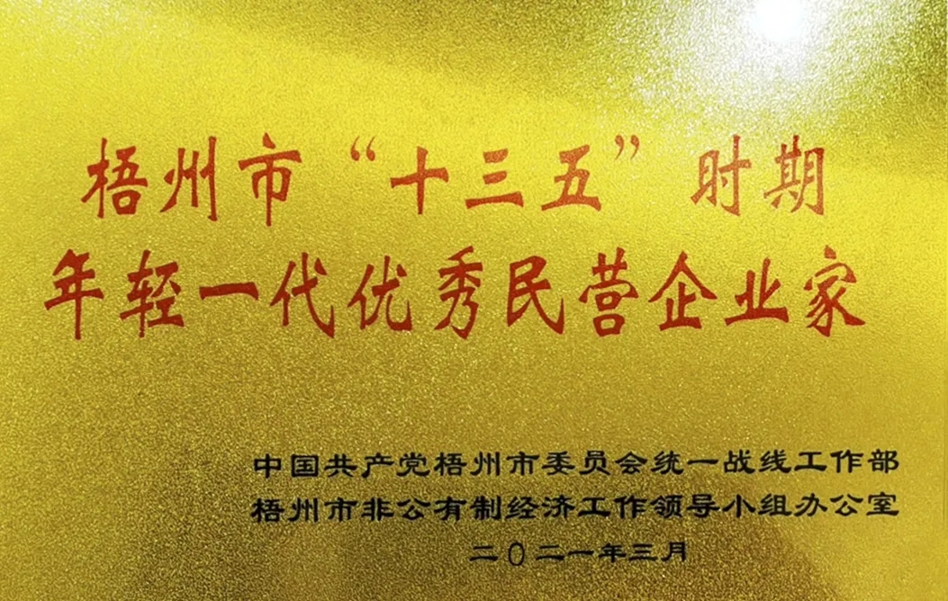 “梧州市‘十三五’時期年輕一代優(yōu)秀民營企業(yè)家”稱號是為貫徹落實中央、自治區(qū)黨委和梧州市委關(guān)于民營經(jīng)濟“兩個健康”發(fā)展的工作部署,營造尊重民營企業(yè)家價值、鼓勵年輕一代民營企業(yè)家創(chuàng)新創(chuàng)業(yè)的社會環(huán)境,進一步增強年輕一代民營企業(yè)家的自豪感和發(fā)展信心,助力做好“六穩(wěn)”工作、落實“六?!比蝿?wù)而設(shè)立,,為“十四五”開好局、起好步作出積極貢獻,以優(yōu)異成績慶祝中國共產(chǎn)黨成立100周年。