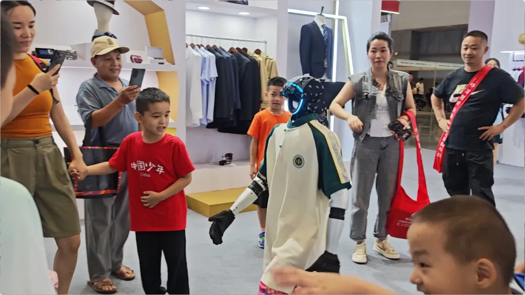展會(huì)期間,還有智能機(jī)器人身著百裕集團(tuán)校服,在展館內(nèi)巡游并與觀眾互動(dòng)。這一創(chuàng)新場(chǎng)景,成為了全場(chǎng)矚目的焦點(diǎn)。當(dāng)傳統(tǒng)校服文化與前沿AI機(jī)器人技術(shù)相遇,碰撞出的不僅是視覺(jué)上的新奇體驗(yàn),更是對(duì)“科技賦能教育,裝備服務(wù)未來(lái)”理念的具象化表達(dá)。