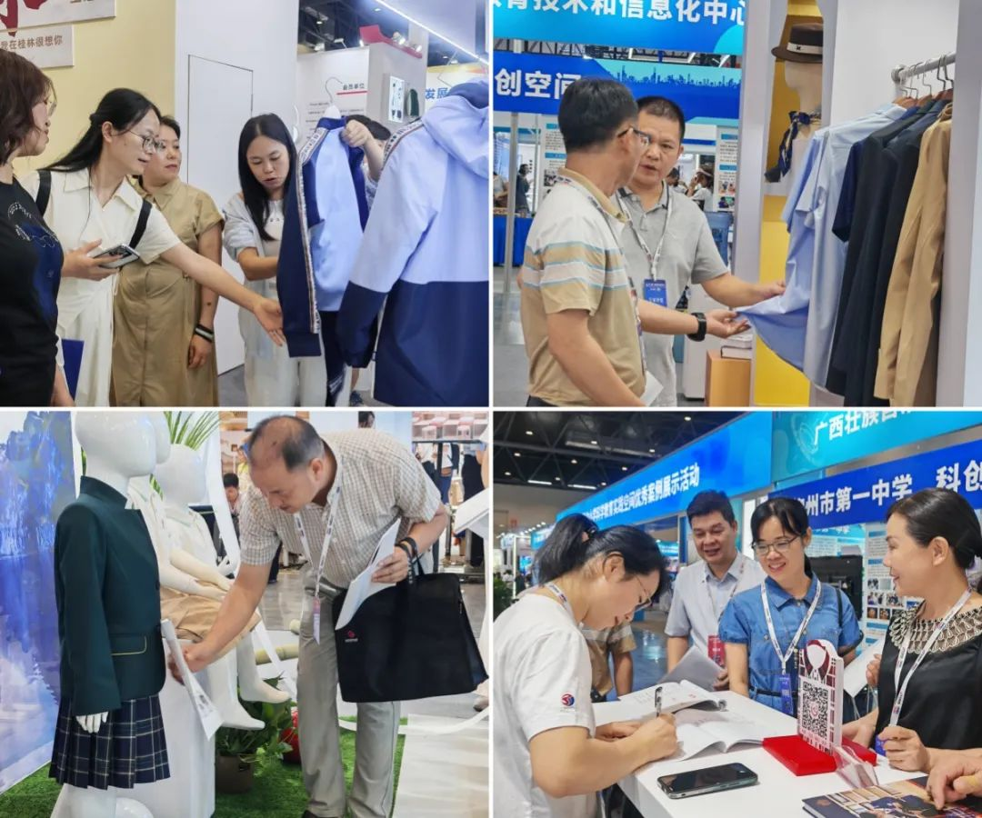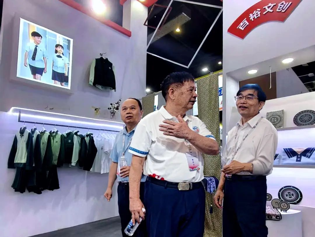 百裕集團(tuán)展位備受矚目,教育部關(guān)心下一代工作委員會(huì)常務(wù)副主任、中國(guó)教育裝備行業(yè)協(xié)會(huì)專(zhuān)家委員會(huì)主任王富,廣西貿(mào)促會(huì)黨組成員、副會(huì)長(zhǎng)、廣西國(guó)際商會(huì)副會(huì)長(zhǎng)劉樹(shù)義,自治區(qū)教育廳原二級(jí)巡視員、廣西民族教育發(fā)展基金會(huì)副理事長(zhǎng)陳標(biāo)智,廣西教育技術(shù)和信息化中心主任肖榮亮,廣西教育裝備行業(yè)協(xié)會(huì)創(chuàng)會(huì)會(huì)長(zhǎng)陳鐵華,廣西教育裝備行業(yè)協(xié)會(huì)代會(huì)長(zhǎng)貴尚明等領(lǐng)導(dǎo)嘉賓蒞臨展位指導(dǎo)。他們對(duì)百裕集團(tuán)將民族文化特色與現(xiàn)代校服設(shè)計(jì)理念相融合的創(chuàng)意實(shí)踐表示贊賞,充分認(rèn)可百裕集團(tuán)在推動(dòng)教育裝備高質(zhì)量發(fā)展所作出的積極貢獻(xiàn),領(lǐng)導(dǎo)及嘉賓暖心的關(guān)懷與指導(dǎo),是百裕集團(tuán)在未來(lái)的發(fā)展道路上的強(qiáng)勁動(dòng)力。