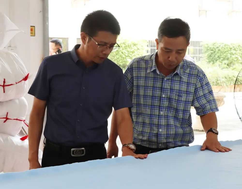 調(diào)研組通過深入生產(chǎn)車間、校服文化館實(shí)地了解企業(yè)生產(chǎn)經(jīng)營(yíng)服裝的面料、工藝、成品檢驗(yàn)等環(huán)節(jié)。