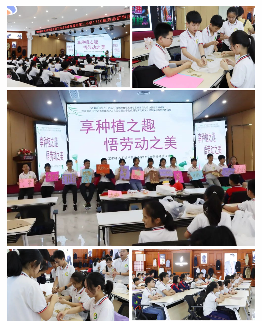 課堂開(kāi)始,勞動(dòng)教育實(shí)踐基地的工作人員組織學(xué)生們,在多功能教室進(jìn)行了農(nóng)作物與勞作知識(shí)的學(xué)習(xí)。學(xué)習(xí)農(nóng)作物的辨認(rèn)、如何挑選出合適的農(nóng)作物種子,還學(xué)習(xí)了如何種植花生的步驟,課堂上同學(xué)們聽(tīng)得聚精會(huì)神,積極參與互動(dòng)。在課堂最后,同學(xué)們用剝出來(lái)的花生殼做成了自己喜歡的拼圖,在積極響應(yīng)環(huán)保理念之余,又體驗(yàn)到了動(dòng)手的樂(lè)趣。