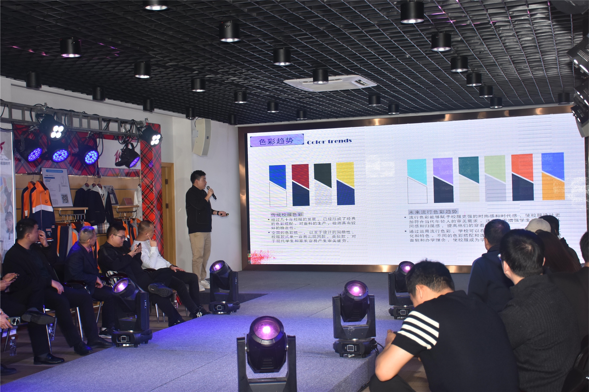 全國學(xué)生服飾南方研發(fā)中心致力于校服文化與功能的研究,款式設(shè)計(jì)等。以提升整個(gè)行業(yè)品牌推動(dòng)創(chuàng)新為使命,繼而引領(lǐng)校服產(chǎn)業(yè)的升級(jí),打造中國校服的特色,推進(jìn)中國校服走向世界,弘揚(yáng)中華民族文化,鑄造民族品牌。研發(fā)中心副總經(jīng)理余朝陽從色彩趨勢(shì)、結(jié)構(gòu)趨勢(shì)、面料趨勢(shì)、科技輔料、文化運(yùn)用等方面分享本次新品校服的設(shè)計(jì)理念。