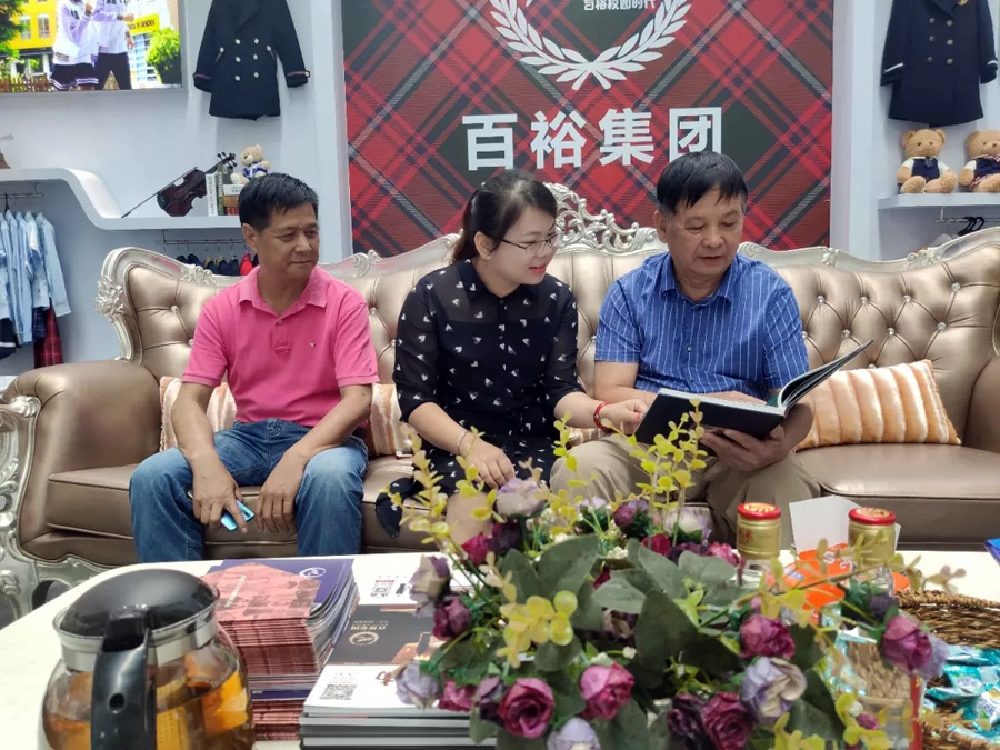 百裕集團(tuán)工作人員向現(xiàn)場(chǎng)來賓講解百裕校園時(shí)代當(dāng)季服裝的品牌理念和款式設(shè)計(jì)。時(shí)尚美觀又不乏個(gè)性的校園服飾引起了現(xiàn)場(chǎng)觀眾濃厚的興趣,大家紛紛駐足觀看、詢問交流。期間,工作得到了各級(jí)領(lǐng)導(dǎo)的現(xiàn)場(chǎng)指導(dǎo)。