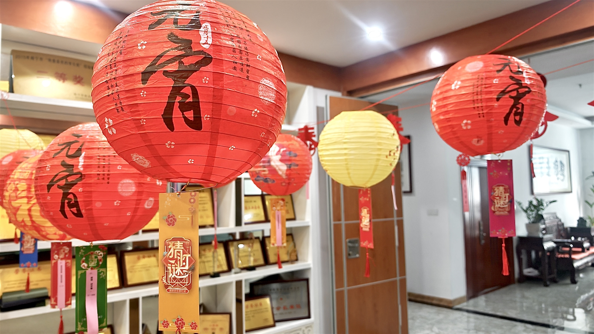 如果說投壺是力量與技巧的較量,那猜燈謎就是智慧與知識的比拼?;顒蝇F(xiàn)場,一盞盞燈籠下懸掛著五顏六色的燈謎紙條,宛如一道道神秘的謎題等待著大家去解開 。