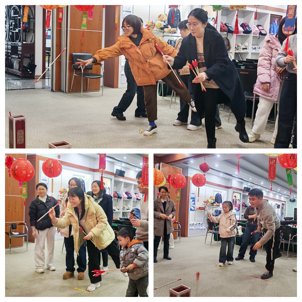 活動規(guī)則是每人手持五支箭,站在距離壺一米五遠(yuǎn)的位置,將箭投入壺中,投中數(shù)量多者獲勝。員工們紛紛摩拳擦掌,躍躍欲試。只見各位同事們眼神專注地盯著壺口,手臂輕輕向后揚(yáng)起,然后迅速發(fā)力向壺中投箭?,F(xiàn)場歡聲不斷,大家都沉浸在投壺的樂趣中。