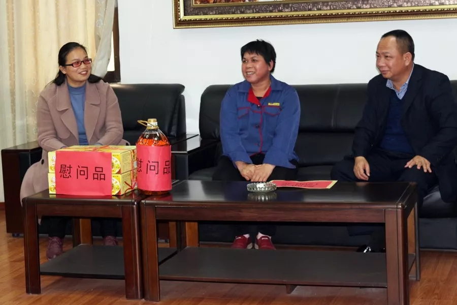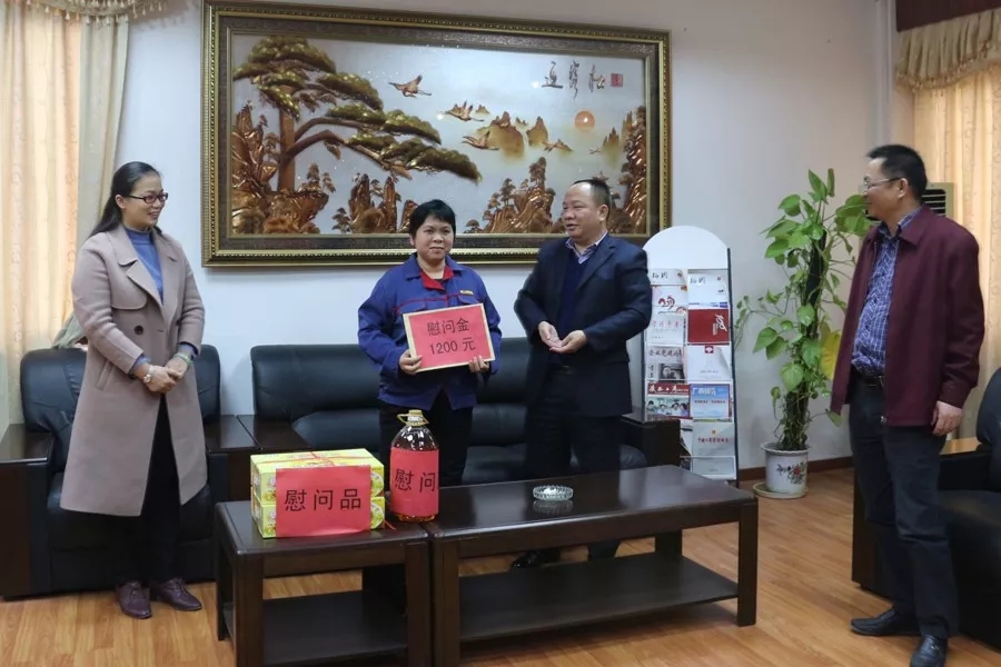 企業(yè)的發(fā)展離不開(kāi)基層職工的辛勤付出,同月29日,廣西梧州市百裕實(shí)業(yè)有限公司常務(wù)副總經(jīng)理謝移植、岑溪生產(chǎn)廠廠長(zhǎng)王平志一行先后走訪黃旭群等困難職工,為職工們送去春節(jié)禮品,并轉(zhuǎn)達(dá)了公司對(duì)職工的深切問(wèn)候和美好祝福。