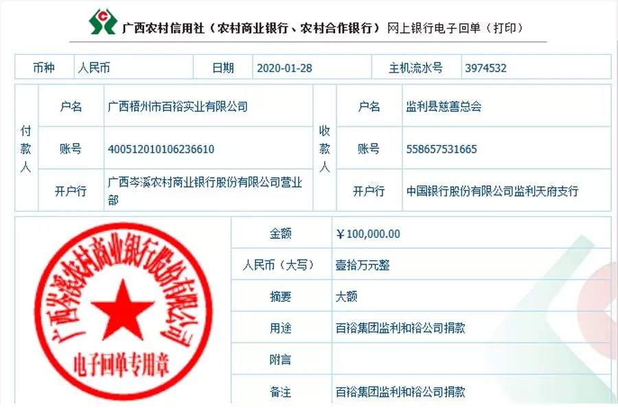 (向監(jiān)利縣慈善總會(huì)捐款壹拾萬(wàn)元)
