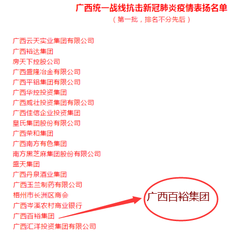 2月14日,自治區(qū)黨委統(tǒng)戰(zhàn)部表?yè)P(yáng)447個(gè)抗疫先進(jìn)單位(個(gè)人),百裕集團(tuán)在這次新冠肺炎病毒疫情愛(ài)心公益行動(dòng)中,積極擔(dān)當(dāng)作為,認(rèn)真履行企業(yè)應(yīng)盡的社會(huì)責(zé)任,捐款、捐物等公益表現(xiàn)得到了自治區(qū)統(tǒng)戰(zhàn)部的表?yè)P(yáng),我們將珍惜榮譽(yù),再接再厲,為打贏防控狙擊戰(zhàn)做出貢獻(xiàn)。