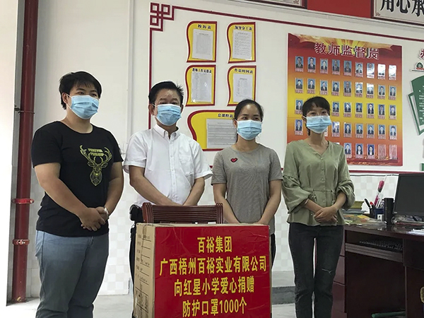 此外,在疫情防控的節(jié)點(diǎn),百裕集團(tuán)同時(shí)向河池都安紅星小學(xué)與城北小學(xué)分別捐贈(zèng)防護(hù)口罩各1000個(gè)和500個(gè),助力學(xué)校守好疫情防控最后一道防線,